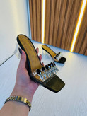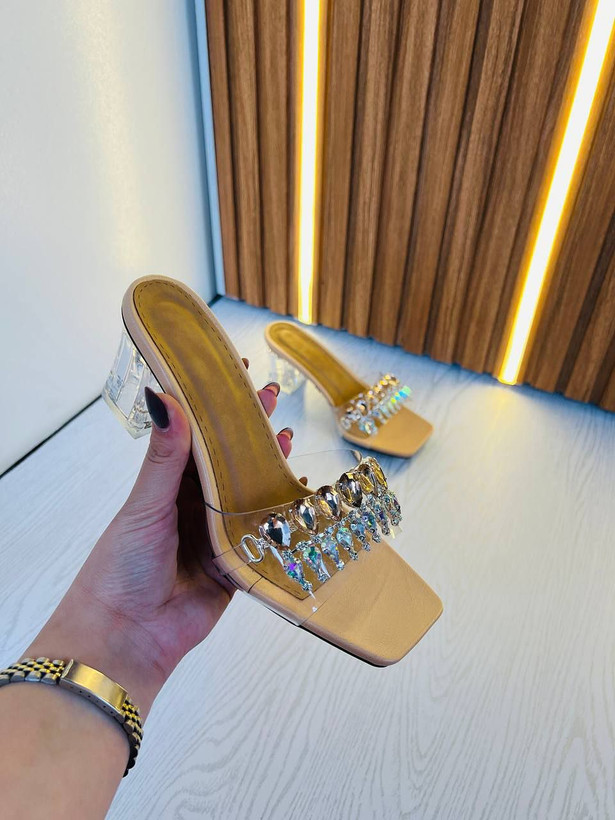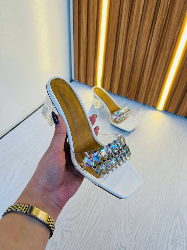 صندل تاج با پاشنه ۶ سانتیمتری و سایز ۳۶ تا ۴۳. رنگبندی کرم، مشکی و سفید.